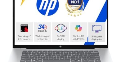 HP Omnibook 5 OLED (Previously Pavilion), Snapdragon X Processor (16GB LPDDR5x,1TB SSD) 2K OLED,16”/40.6cm, Win11, M365*Office24, Glacier Silver, 1.59kg, fb0001QU, Backlit, Next-Gen AI Laptop